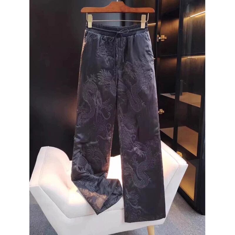 中国風の薄いダウン綿のズボンの女性の秋と冬のヨーロッパ風のデザインと国民風の刺繍が厚く暖かいワイドレッグパンツ コットン オータム 秋物 ウィンター 冬物 ワイドパンツ ヨーロピアン sine95965128951
