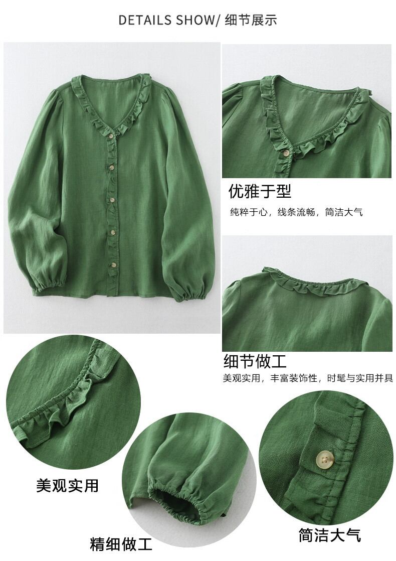 春と秋のエサ菌レース綿とリネン長袖シャツ女性ルーズでスリムなデザインのニッチリネンシャツトップ ロング コットン スプリング 春物 オータム 秋物 sine45995190205
