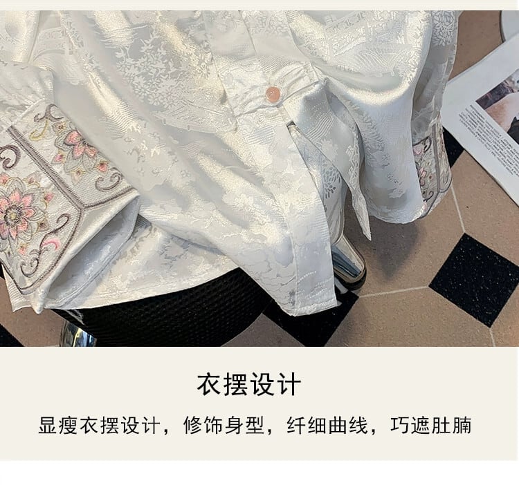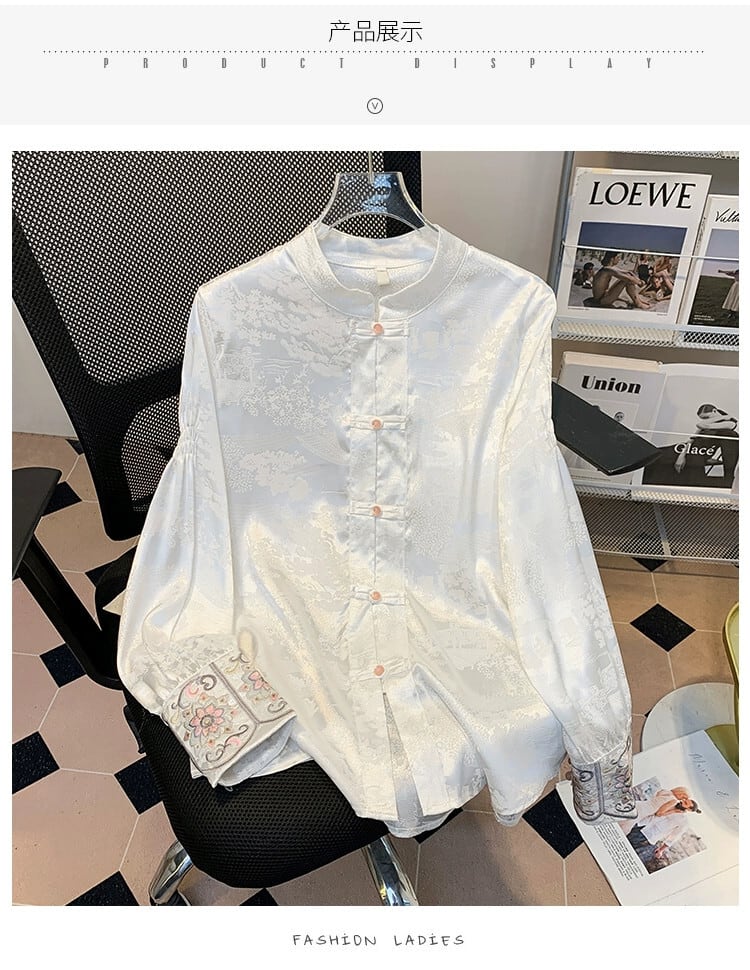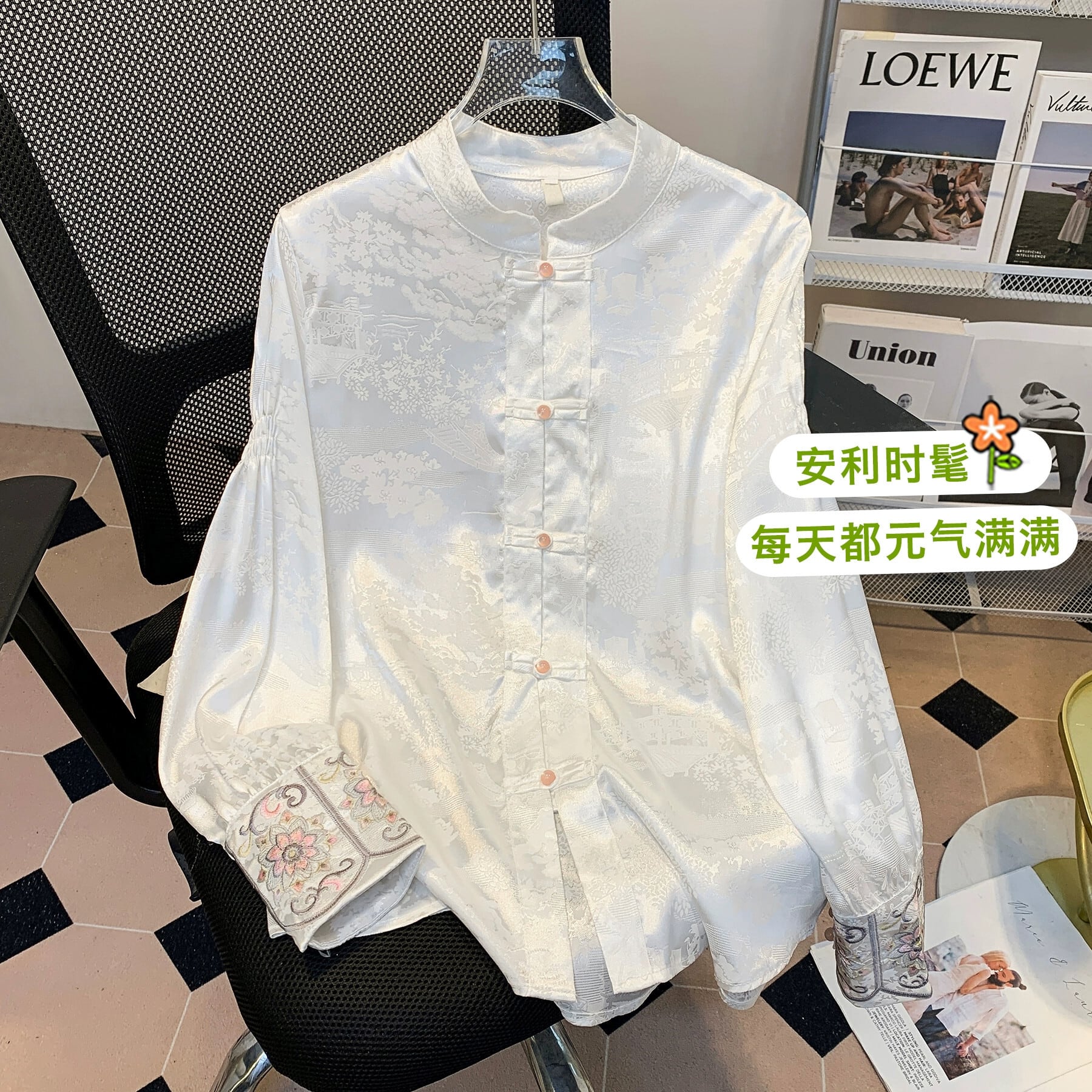 中国風アセテートサテンシャツ女性の春と秋の新中国風レトロプレートボタン刺繍スプライシングシャツ長袖トップ ロング レッド スプリング 春物 オータム 秋物 sine10490984449
