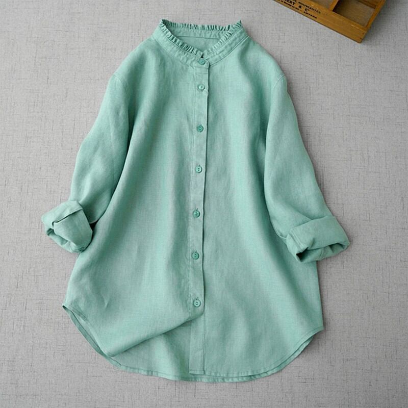 ese レーススタンドカラーリネンシャツ女性の春と秋ルーズカジュアル文学スタイル長袖白シャツ綿とリネントップ ロング ホワイト コットン スプリング 春物 オータム 秋物 sine1518704410