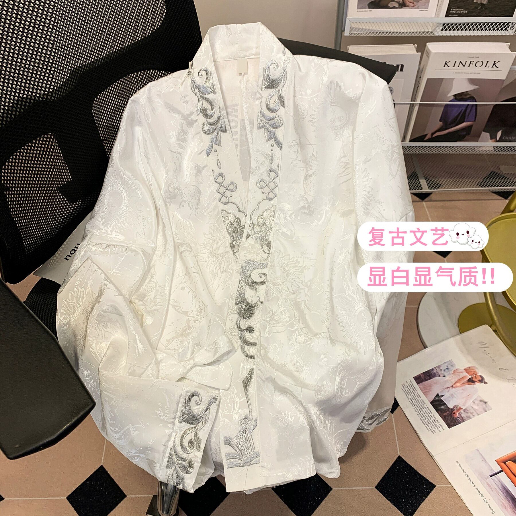 中国風国民風刺繍Vネックシャツ、春と秋のニッチデザイン、改良された漢服トップスと馬のスカート レッド スプリング 春物 オータム 秋物 sine21799545937