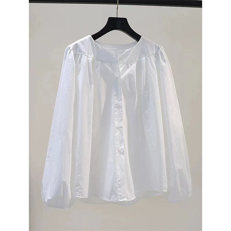 ese レトロ ランタン スリーブ シャツ レディース 春と秋 ルーズで多用途なデザイン 芸術的スタイル ラウンドネック ベビードール トップ ランタンスリーブ スプリング 春物 オータム 秋物 Oネック sine61673810717