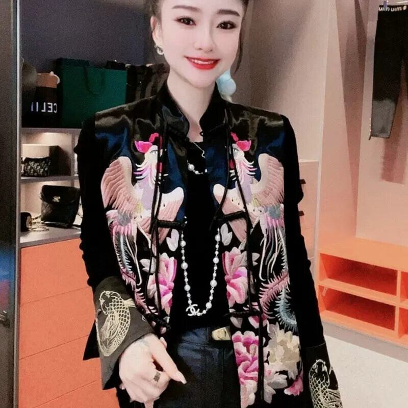 中国風フェニックス着用牡丹刺繍ベストジャケット女性春と秋スタイル国民的ファッションスタイル重工業刺繍ディスクバックルベストジャケット レッド スプリング 春物 オータム 秋物 sine56124203158