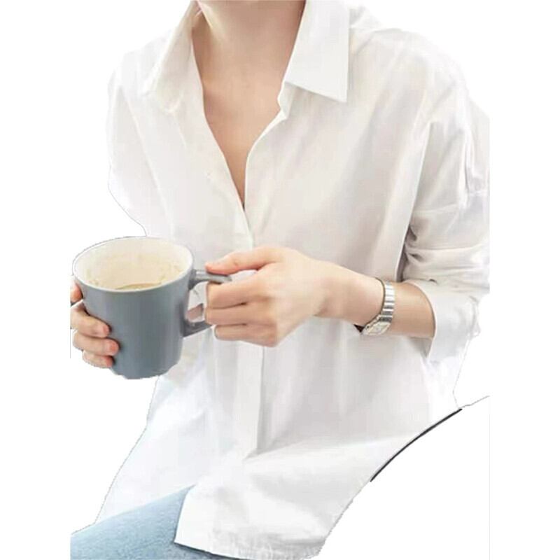 春と秋の通勤用白シャツ女性のバージョン、ゆったりと多用途、カジュアルなデザイン、ニッチな長袖シャツ、ジャケットトップ ロング ホワイト スプリング 春物 オータム 秋物 sine64468505184