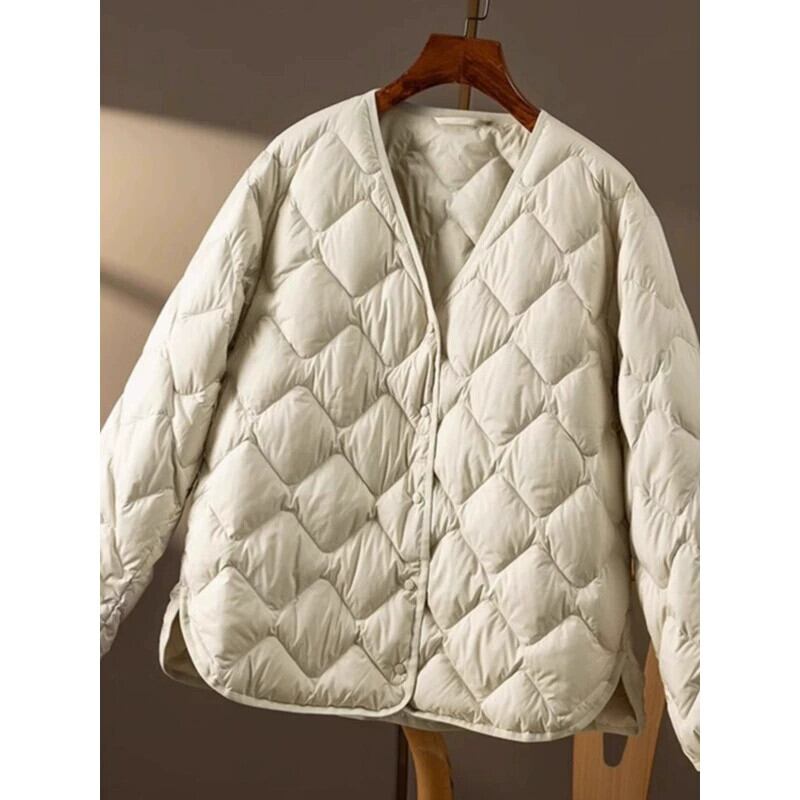 レトロ ese 菱形軽量ダウンジャケット女性の冬のファッションルーズ V ネックパッド入り綿肥厚暖かい綿のジャケット コットン ウィンター 冬物 Vネック sine73860015391