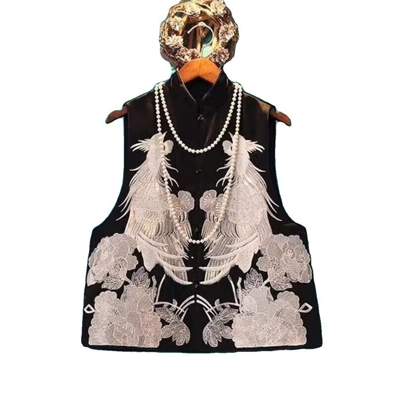 中国風の国民風刺繍ベスト女性春と秋のハイエンドレトロスタンドカラーアセテートチョッキトップ レッド スプリング 春物 オータム 秋物 sine80642162215