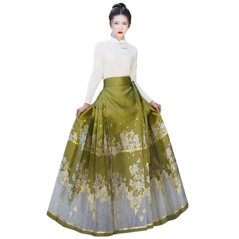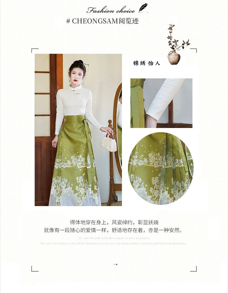 中国風軽国民風漢服スーツ女性、春と秋の日常着、古代風重工業織金馬面スカート 2 点セット スプリング 春物 オータム 秋物 sine9351919195