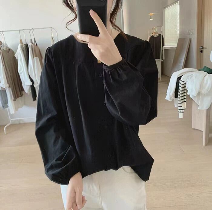 春と秋のレトロなパフスリーブシャツの女性、ルーズ、スリム、ニッチなデザイン、ラウンドネックシャツトップ スプリング 春物 オータム 秋物 sine66117663767
