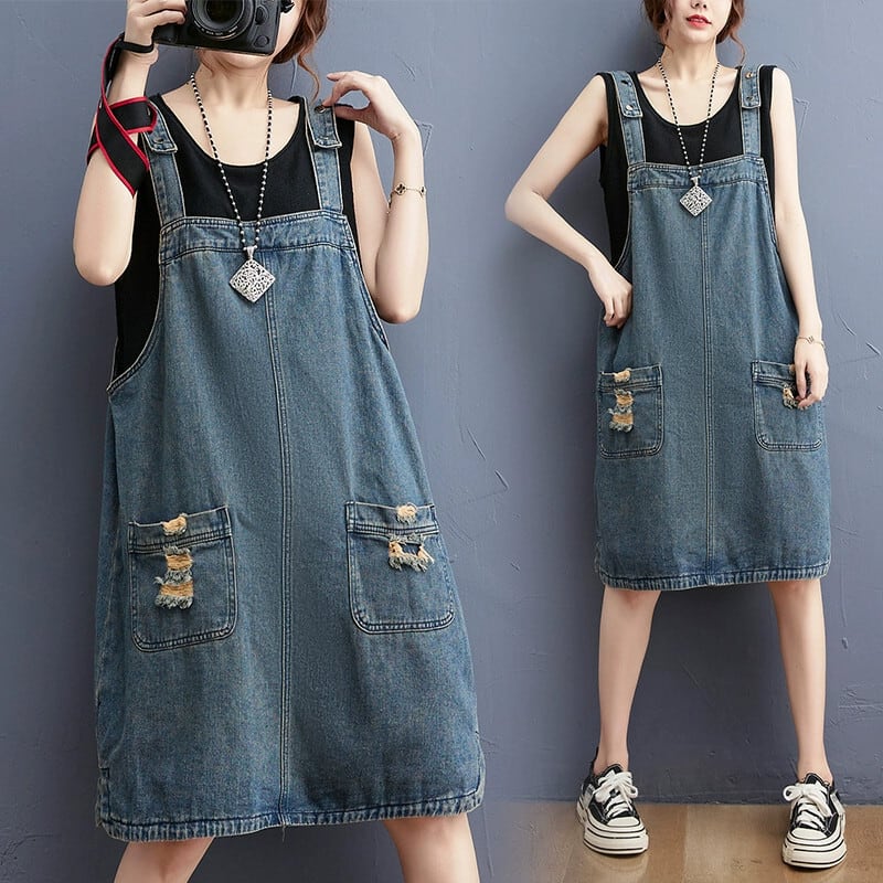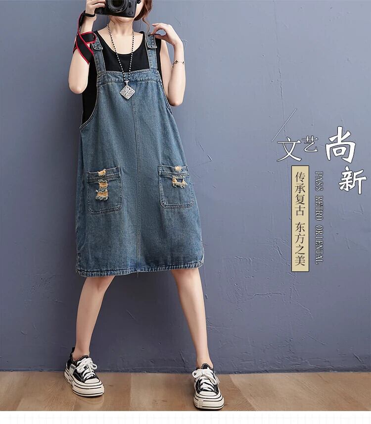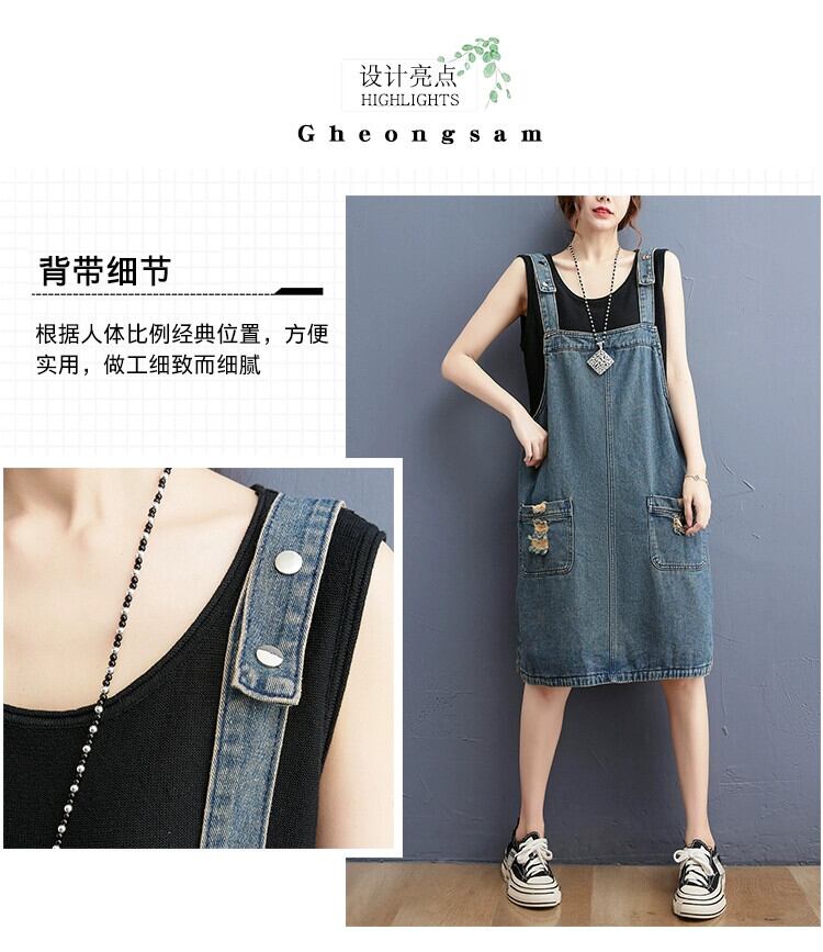 ヨーロッパデニムサスペンダースカート女性の夏 2021 新しい緩い大きいサイズの脂肪ミリメートル穴スタイルミッドレングスサスペンダードレス 大きめサイズ サマー 夏物 ヨーロピアン sine37309787131