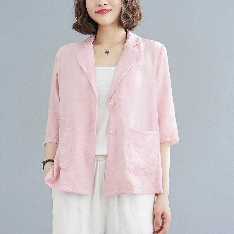 コットンとリネンのブレザー女性の夏 2021 新しい緩い文学無地薄い日焼け止めシャツカジュアルな小さなスーツトップ サマー 夏物 ソリッドカラー sine36183267439