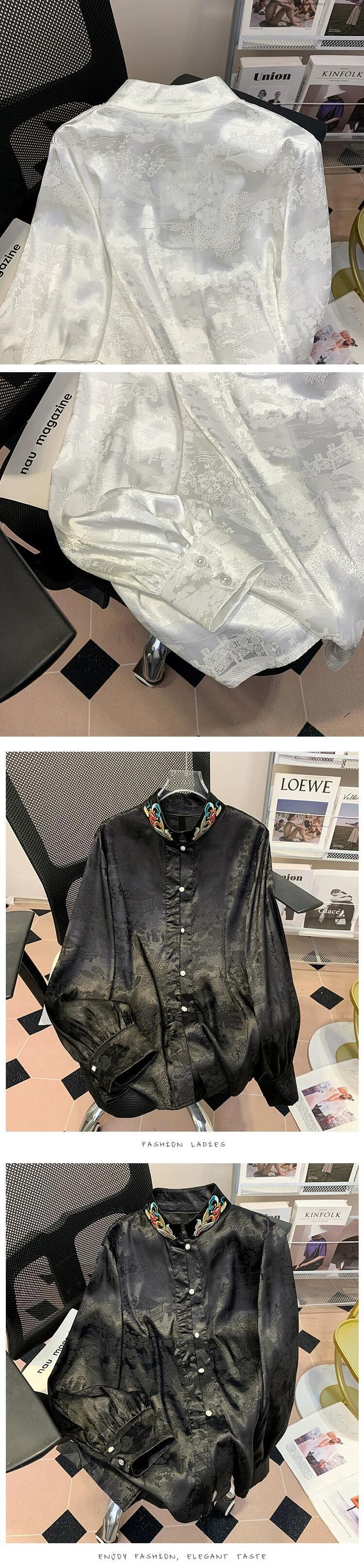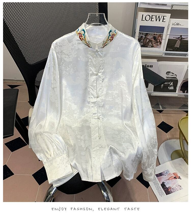 中国風の刺繍スタンドカラーの白いシャツの女性、春と秋の軽い国民風のダブルブレストのボタンダウントップと馬のスカート ホワイト レッド スプリング 春物 オータム 秋物 sine69458916322