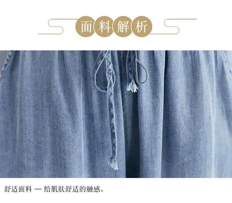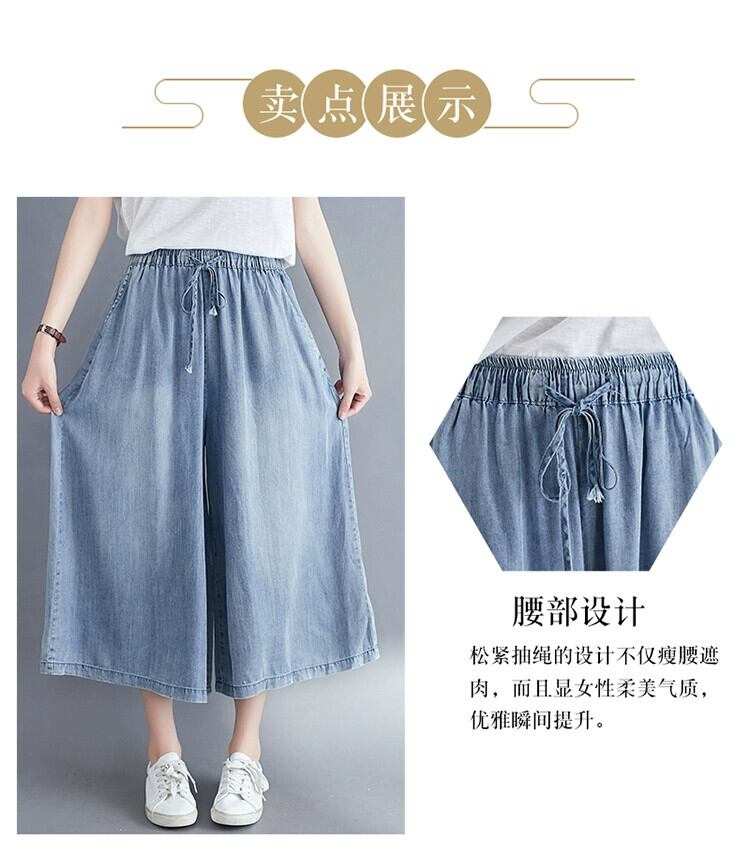 2021 夏の新スタイルのデニムワイドレッグパンツとスカートの女性、ゆったりとした大きいサイズ、太さ mm、巾着、テンセルカジュアルクロップドパンツ 大きめサイズ サマー 夏物 sine13087898703