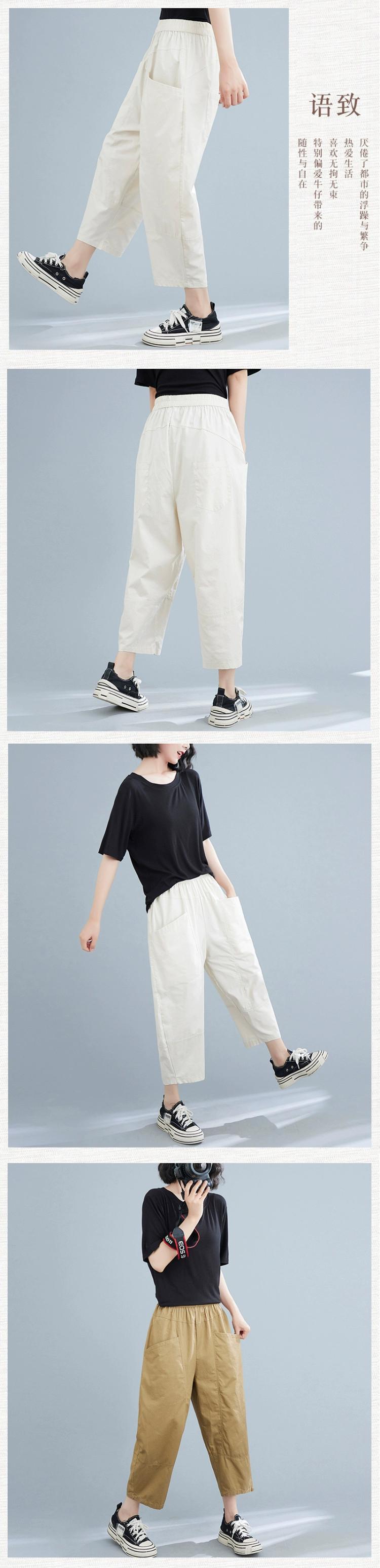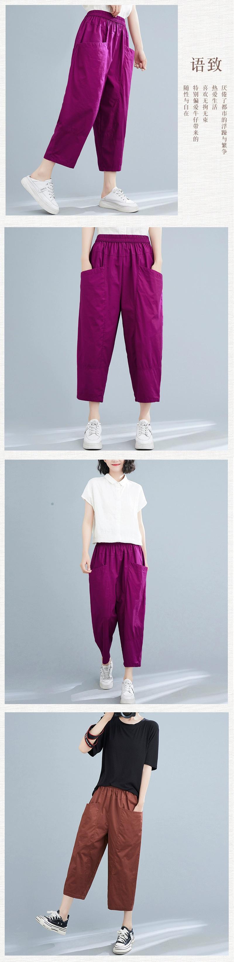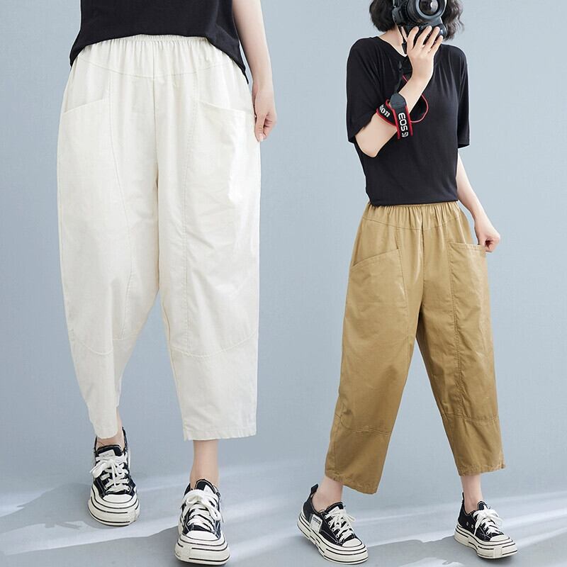 女性のハーレムパンツ夏 2021 ゆったり大きいサイズレトロ無地ストレート弾性ウエストキャロット 9 点パンツ エラスティック 伸縮 大きめサイズ サマー 夏物 ソリッドカラー sine39119467615