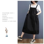 年齢を減らすことができる夏のサスペンダースカートの女性、肉をカバーするゆったりとした大きいサイズの芸術的なサスペンダー、大きなポケット、スタイルのミドル丈のドレス 大きめサイズ サマー 夏物 sine60876506138