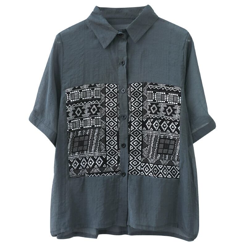 レトロプリントコットンとリネンシャツの女性の夏 2021 新しい緩い大きいサイズ気質ラペル薄いカジュアル半袖トップ 大きめサイズ サマー 夏物 sine4219355016