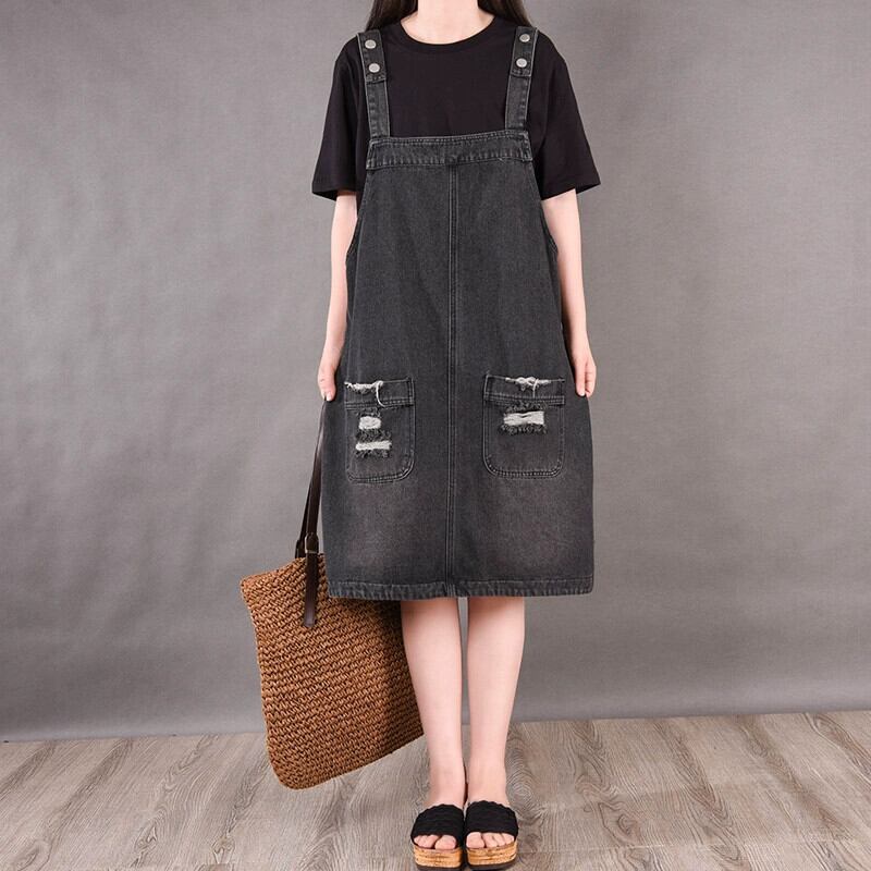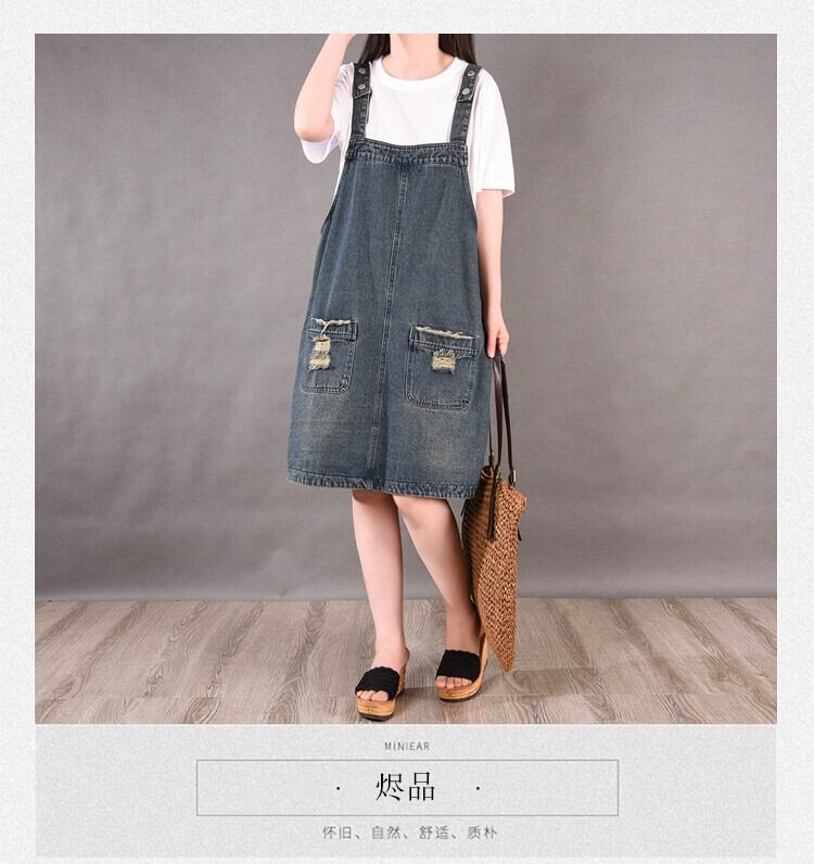 スタイルデニムサスペンダースカート 2021 夏新ファットミリメートルプラスサイズの女性のルーズホール着用サスペンダードレス 大きめサイズ サマー 夏物 sine13463323411