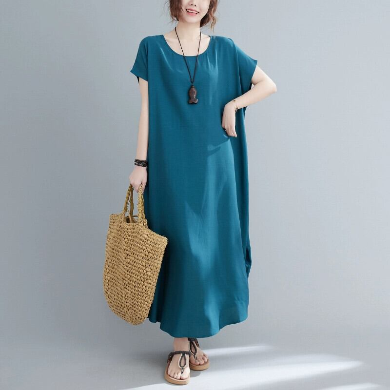 プラスサイズの女性の夏の 2021 新しいルーズファット mm ソリッドカラーの繭型ローブ半袖 a ラインドレス 大きめサイズ サマー 夏物 Aライン sine26961099852