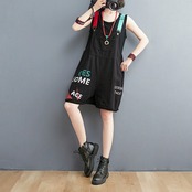 スタイルデニムサスペンダーショーツレディース夏服2021ルーズ大きいサイズファットmmレターワンピースカジュアル5点式ワイドレッグパンツ 大きめサイズ サマー 夏物 ブルマー sine82367364605