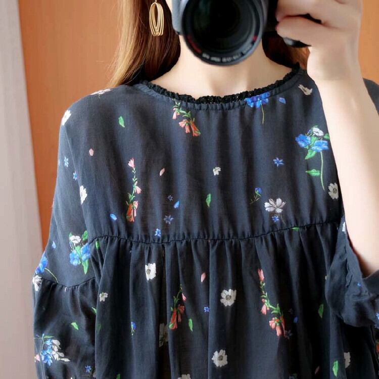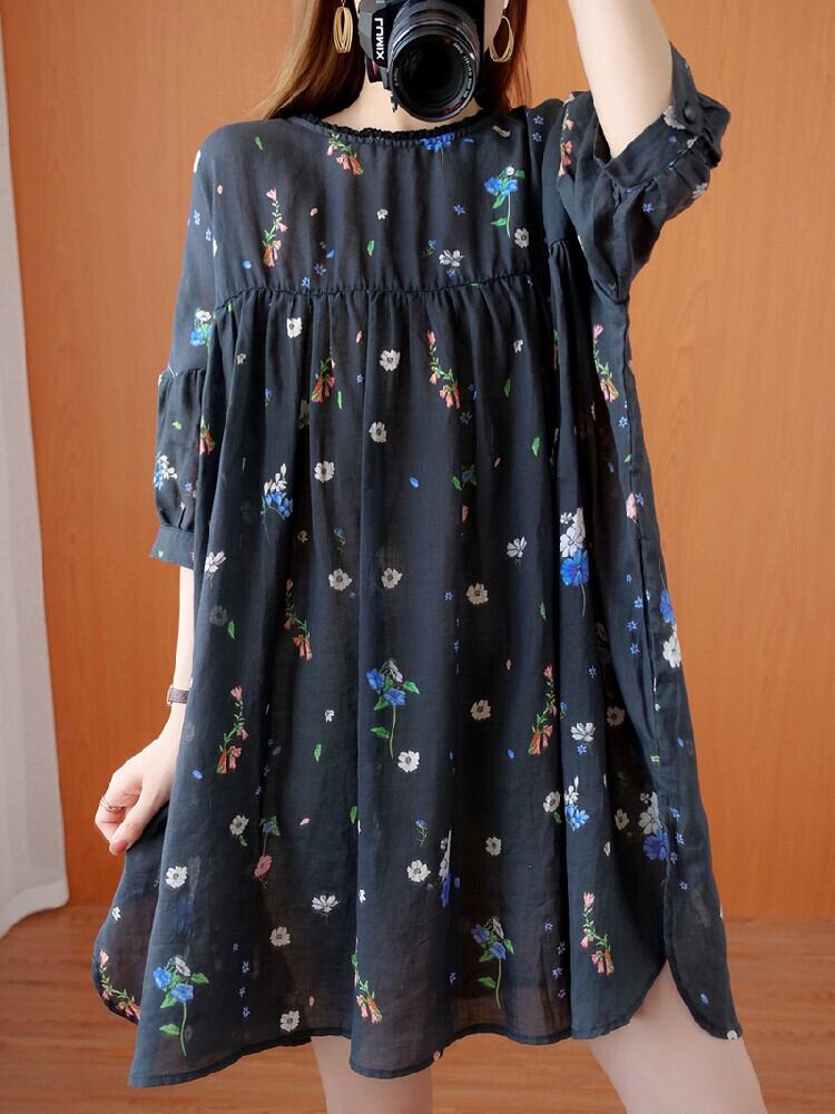 西洋スタイルのプラスサイズの婦人服 2021 夏ルーズ脂肪 mm カバー肉と年齢削減プリントミッドレングスの綿とリネンの人形のドレス コットン 大きめサイズ サマー 夏物 sine54550237453