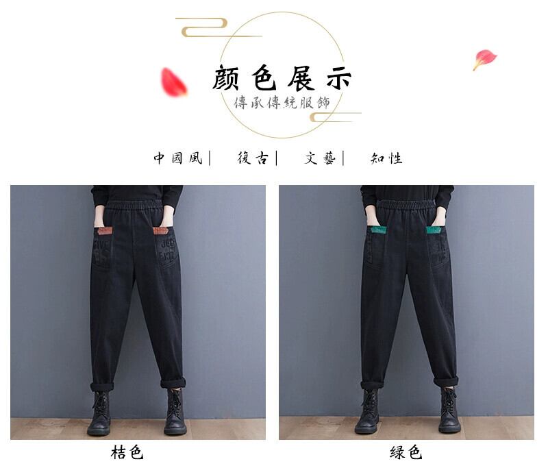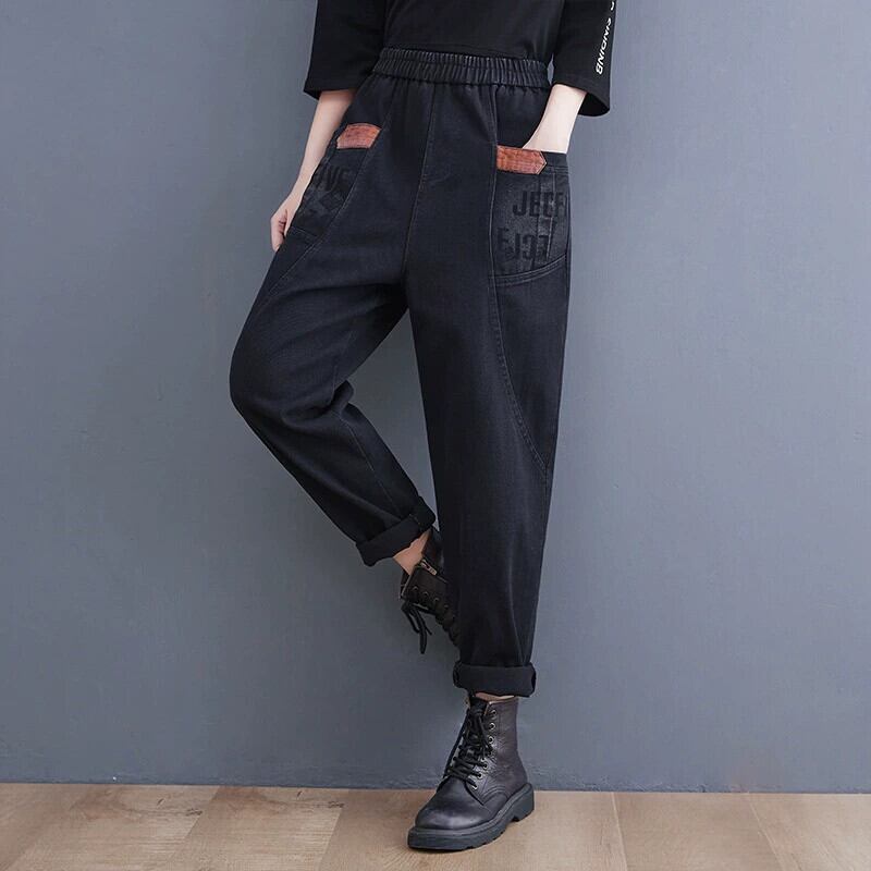 デニム ハーレムパンツ レディース 2022 春夏 ゆったり 大きいサイズ レトロコントラストカラー ポケット文字 ダメージ加工 9点パンツ 大きめサイズ スプリング 春物 サマー 夏物 sine27964828152
