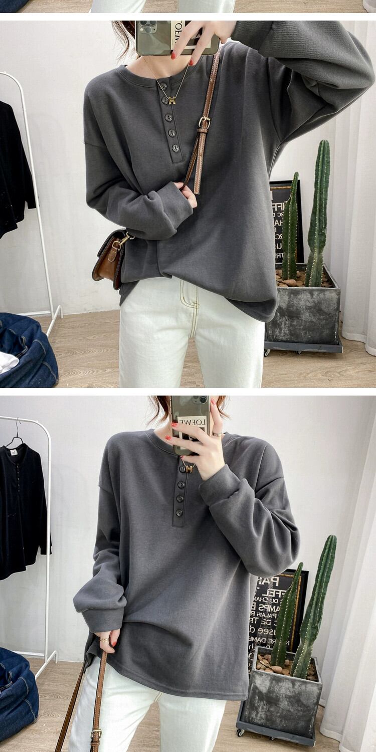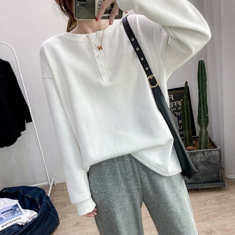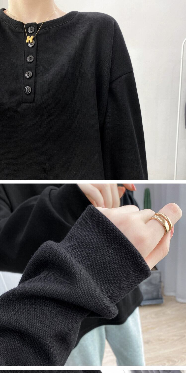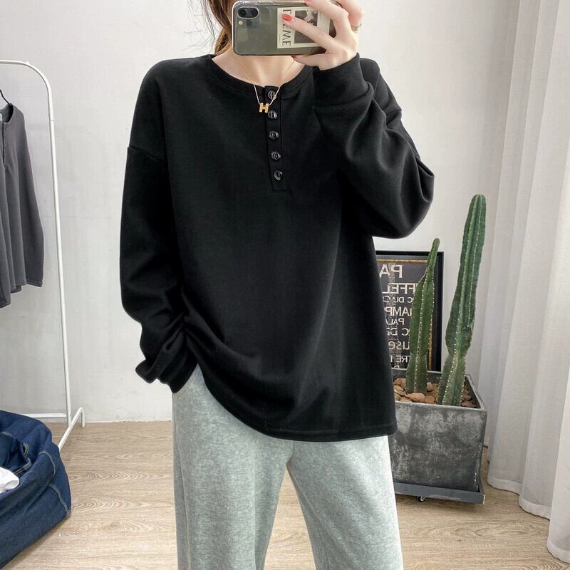 長袖スウェットシャツ底シャツ女性秋 2021 冬の新ルーズ大きいサイズファット mm スタイルボタンプルオーバー Tシャツトップ ロング 大きめサイズ オータム 秋物 ウィンター 冬物 sine85186205335