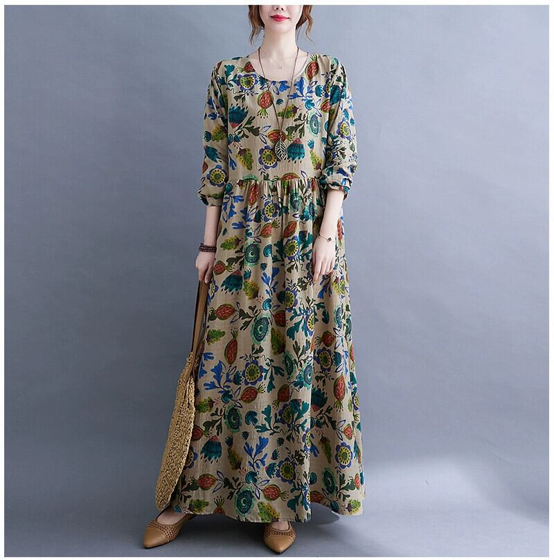 エスニックスタイルのプラスサイズのレディースドレス、春と秋のスタイル、ゆったりとスリム、お腹と脂肪mmをカバー、レトロプリントの大きなスイングローブ 大きめサイズ スプリング 春物 オータム 秋物 sine43208475762