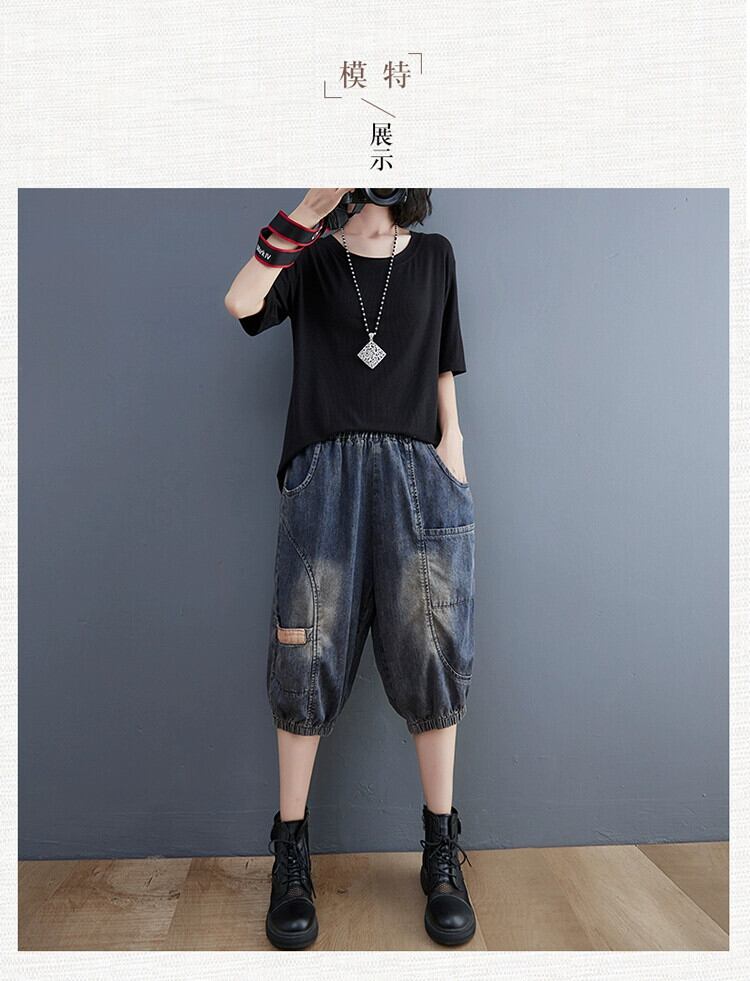 ファットシスターデニムハーレムパンツレディース 2021 夏服ゆったり大きいサイズパーソナライズされたダメージミディアムパンツ七分ブルマ 大きめサイズ サマー 夏物 ショーツ ブルマー sine27343314404