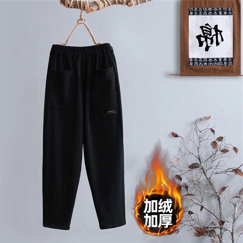 クリアランスリーク〜カジュアルハーレムパンツ女性の秋と冬ルーズな大きいサイズプラスベルベット肥厚パッチポケットアウターウェアズボンとスウェットパンツ 大きめサイズ オータム 秋物 ウィンター 冬物 sine16648301775