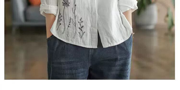 これらの貿易輸出の第一線の有名婦人服ブロークンコード刺繍入りリネントップス綿とリネンの長袖シャツ ロング レッド コットン sine31257471138