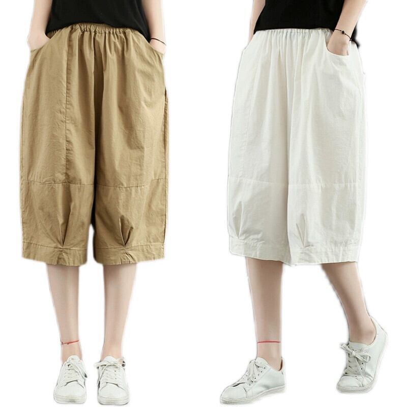 作業服ワイドレッグパンツ女性 2021 夏の新スタイルルーズ大きいサイズ 6 点ミディアムパンツ弾性ウエストと厚いカジュアルカジュアル 5 点パンツ エラスティック 伸縮 大きめサイズ サマー 夏物 sine94149527150