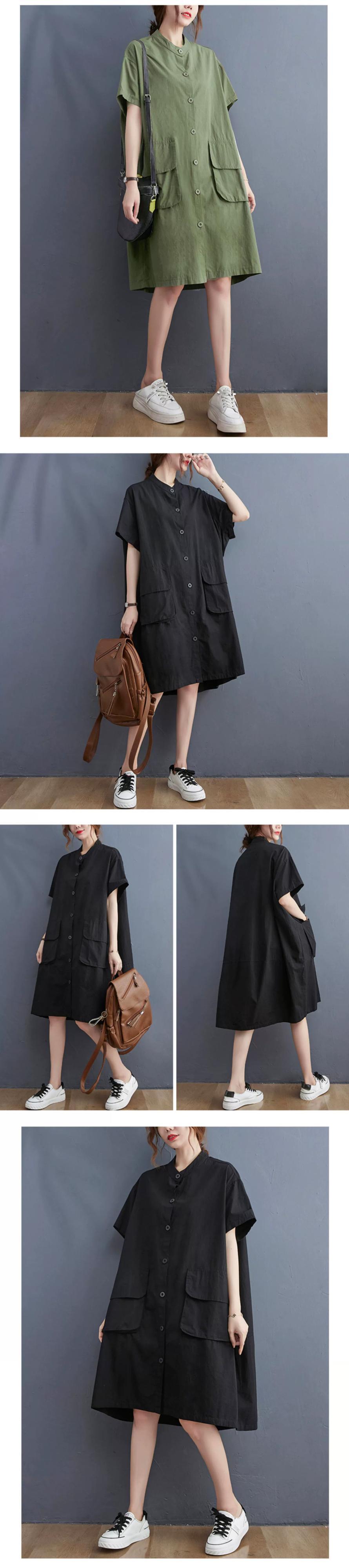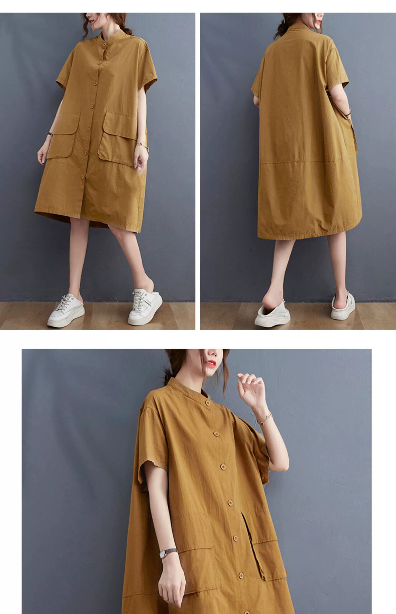 プラスサイズの女性のソリッドカラードレス 2021 夏ルーズ脂肪 mm 肌カバーワークウェアポケットミッドレングスシャツドレス 大きめサイズ サマー 夏物 sine84419157435
