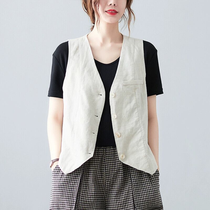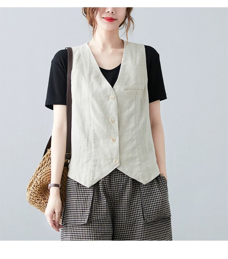 コットンとリネンのベストジャケット女性の夏 2021 新しい緩い文学レトロな無地薄いカジュアルリネンベストトップ サマー 夏物 ソリッドカラー sine35975686345