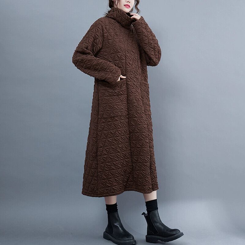 秋と冬のキルトドレス、ゆったりとした大きいサイズ、ミドル丈、レトロな菱形、厚みのある、暖かい底、ハイカラーコットンコート 大きめサイズ オータム 秋物 ウィンター 冬物 sine68778514231