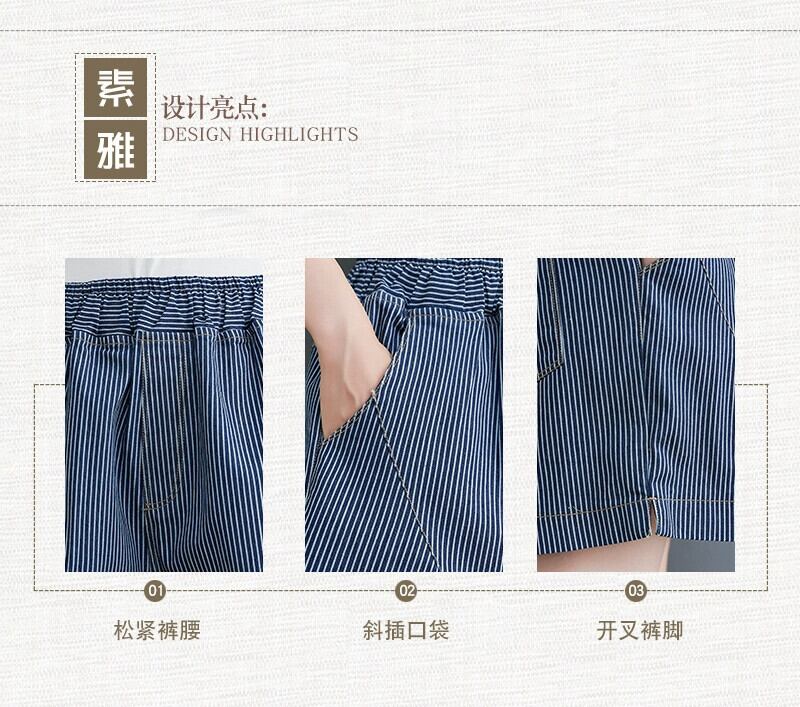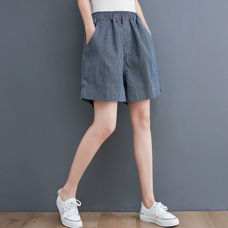 デニムショーツ レディース 2021 夏 ゆったり 大きいサイズ ウエストゴムスタイル ストライプ ホットパンツ Aライン ワイドレッグパンツ エラスティック 伸縮 大きめサイズ サマー 夏物 ブルマー ワイドパンツ sine50196079983