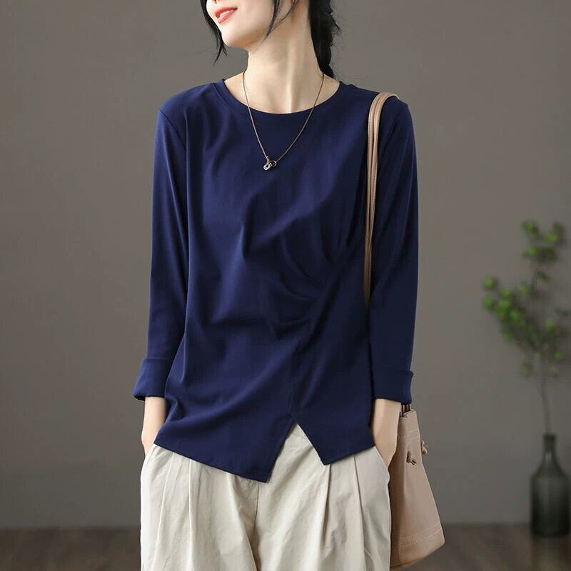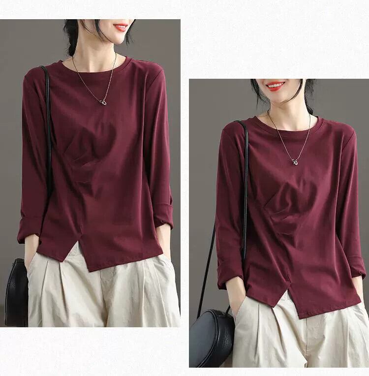 イタリアeign trade輸出ブランドクリアランスレディース大きいサイズ裾スリットボトシャツ長袖Tシャツトップス ロング 大きめサイズ sine65333012572
