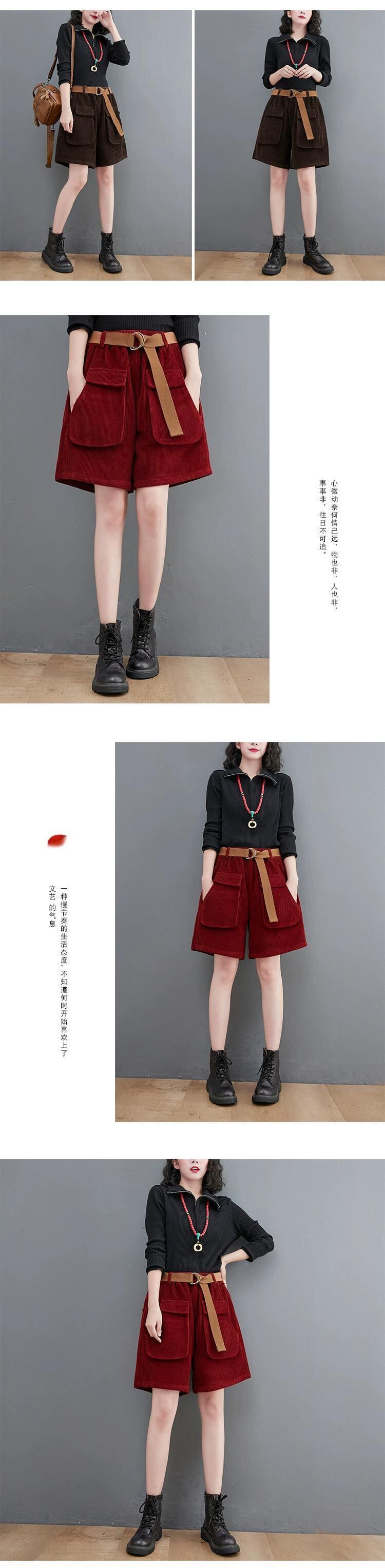 コーデュロイショーツ女性秋 2021 冬ルーズ大サイズレトロ大ポケットコーデュロイ底カジュアルワイドレッグブーツパンツ 大きめサイズ オータム 秋物 ウィンター 冬物 ブルマー ワイドパンツ sine27228482458