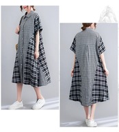 200ポンドの脂肪綿とリネンのドレス夏緩い大きいサイズのスタイルチェック柄スプライシングリネン半袖シャツスカート コットン 大きめサイズ サマー 夏物 sine58233933635