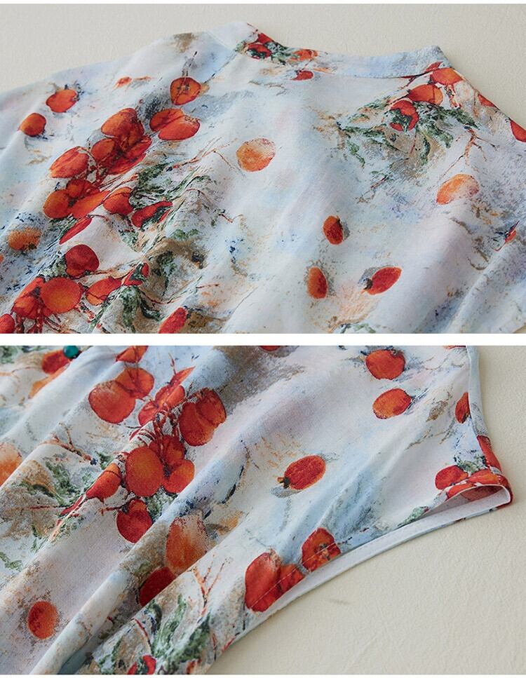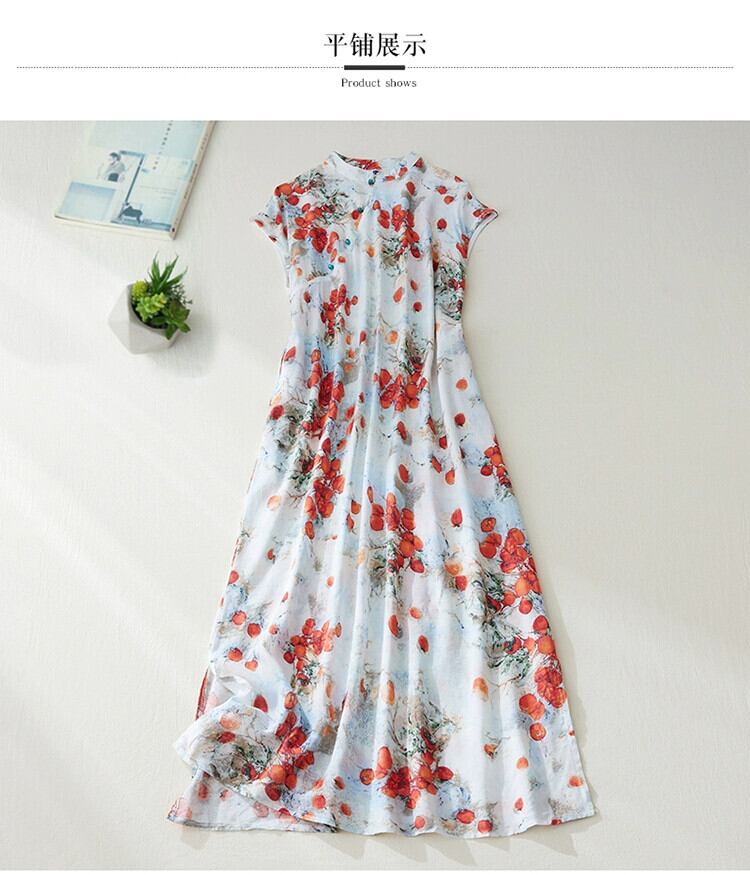 ビッグブランドカットラベルクリアランスeign trade最後のシングル女性の綿とリネンの半袖ドレス斜め胸の中国風改良されたリネンチャイナドレススカート コットン sine39281773421