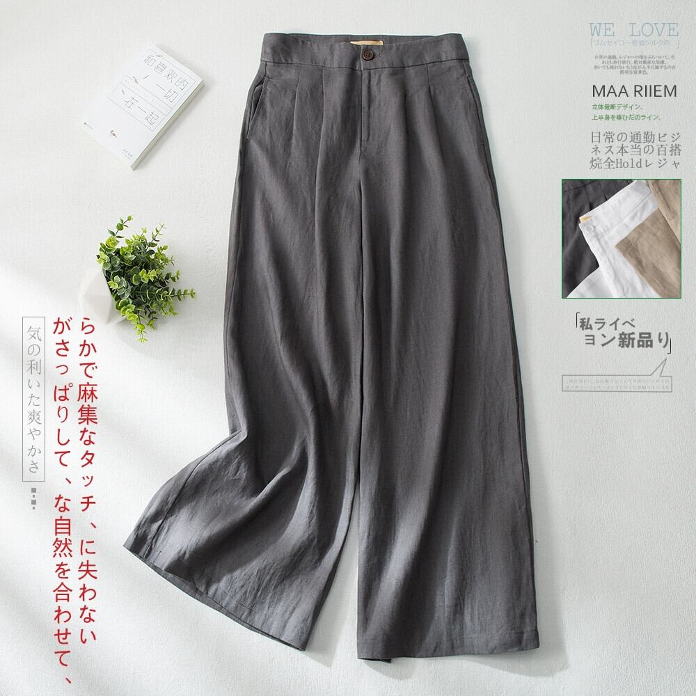 カットレーベルショッピングモール撤退女性の綿とリネンのワイドレッグパンツルーズ9ポイントハイウエストカジュアルストレートリネンパンツ コットン sine31775133602