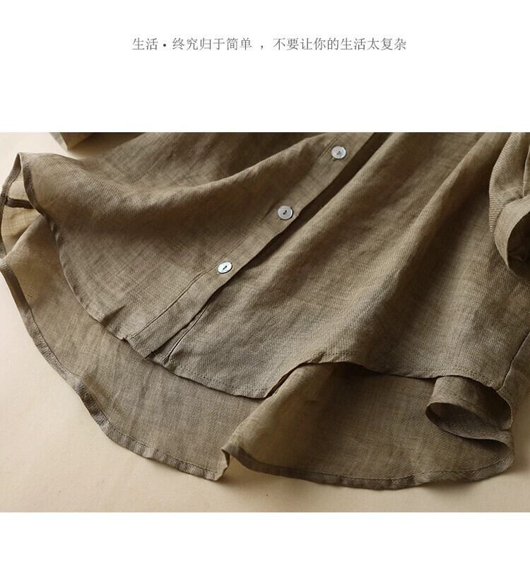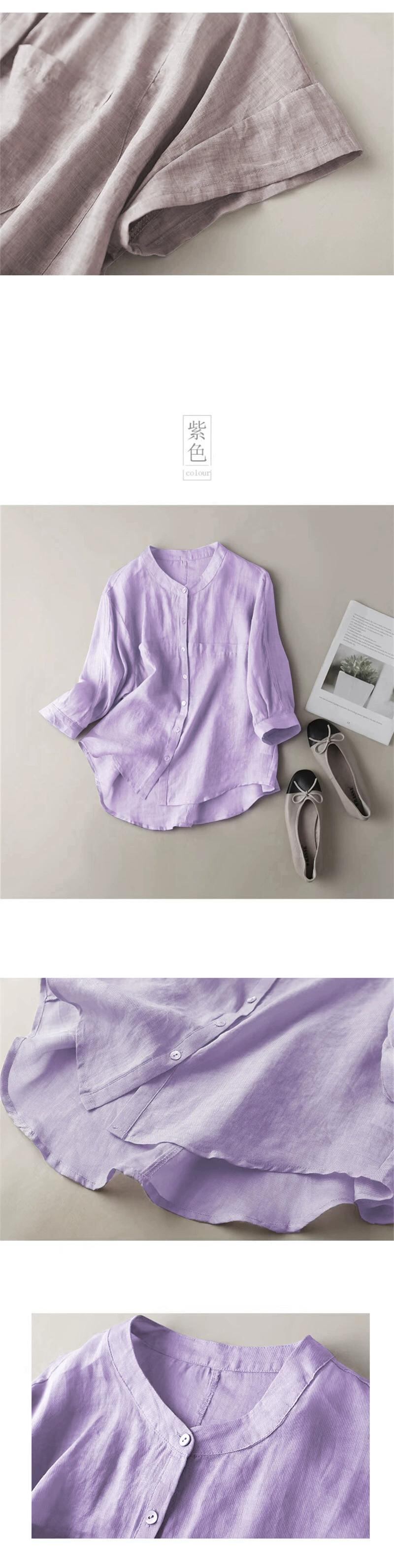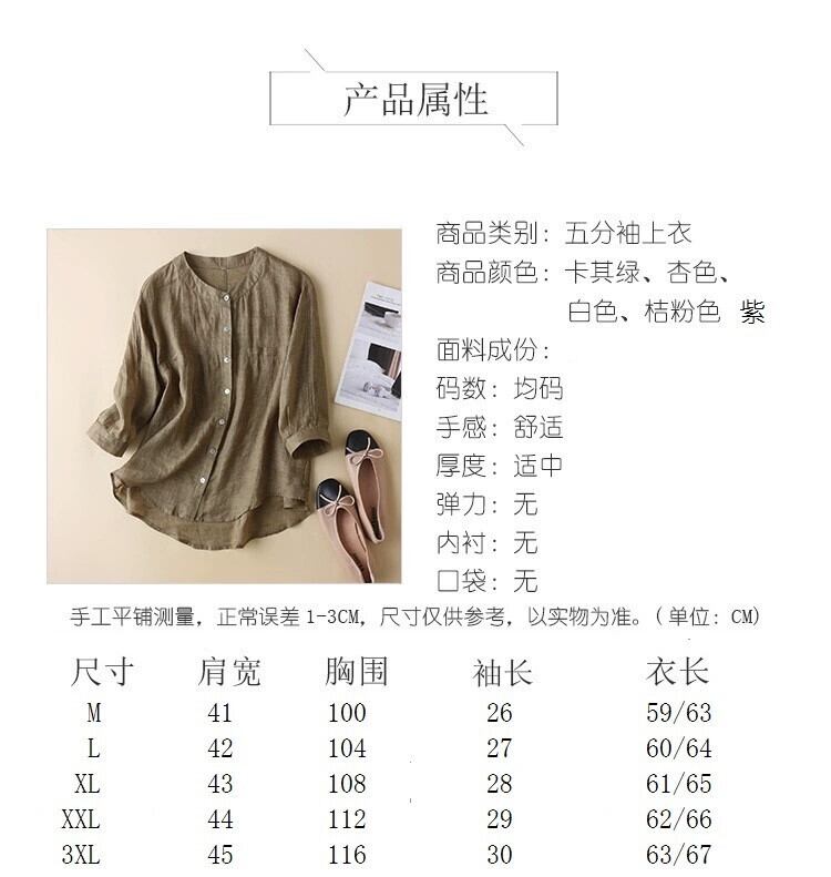 Eign Trade Export 有名婦人服 クリアランス クリアランス ミッドスリーブ リネン 薄手 トップ ルーズ カジュアル コットンとリネン ソリッドカラー シャツ sine24004587250