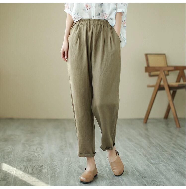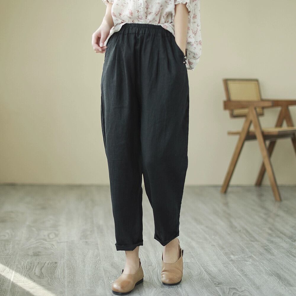 特別オファー~これらのシングルコットンとリネンハーレムパンツレディース、ルーズ、大きいサイズ、痩身、レトロカジュアル、9点リネンキャロットパンツ 大きめサイズ sine39188123555