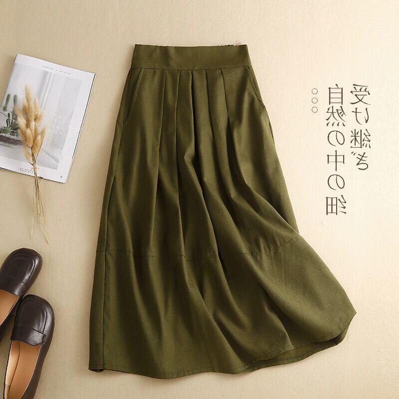 クリアランス漏れ〜カウンターは有名なオーダーメイドのシングル女性の芸術的なリネンのAラインスカートハイウエストの綿とリネンのスカートを撤回しました コットン sine69415751876