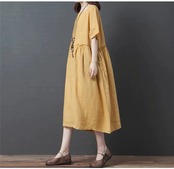 スタイルコットンとリネンのドレスの女性の夏 2022 新しい緩い大きいサイズ無地スプライシング腹カバー痩身リネンミッドレングススカート 大きめサイズ サマー 夏物 ソリッドカラー sine72452029123