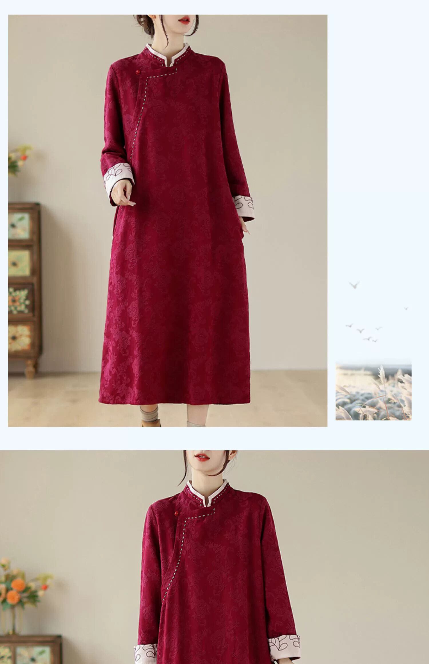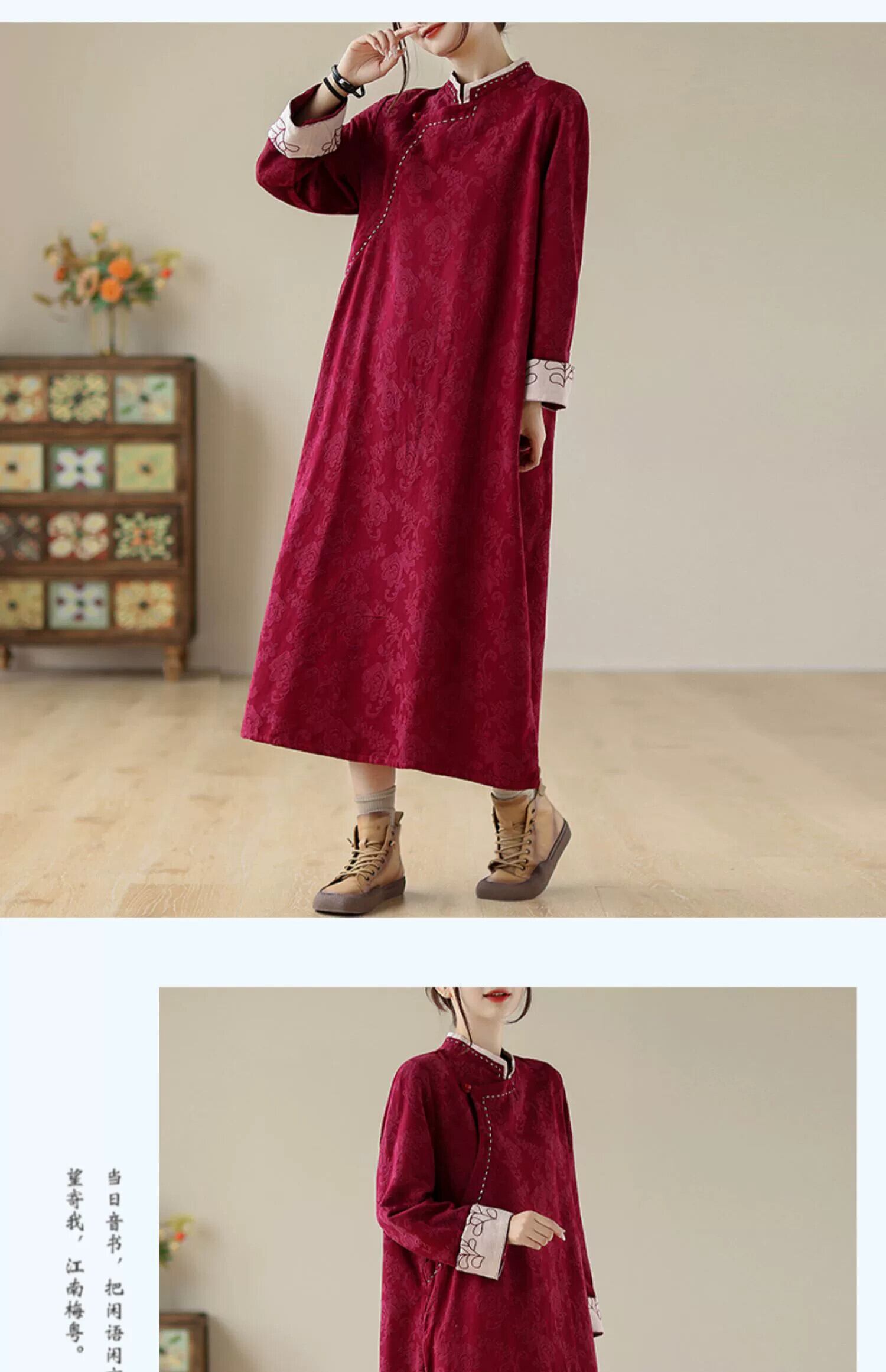 クリアランス漏れ〜カウンターからの最後の商品は、中国風の改良されたチャイナドレスのロングスカート、春と秋の国民風のレトロなジャカードスタンドカラードレスです スプリング 春物 オータム 秋物 sine33918458564