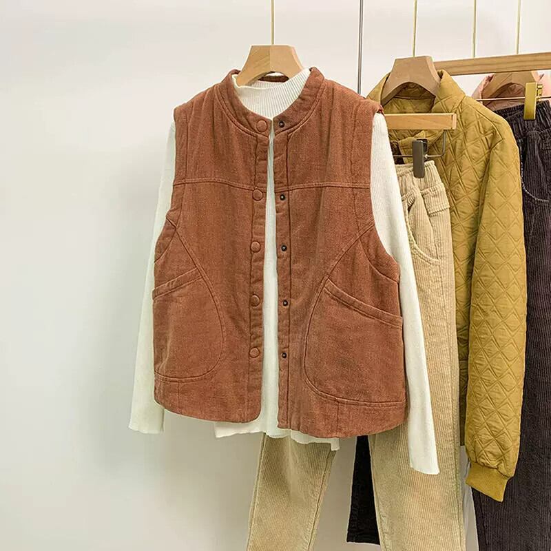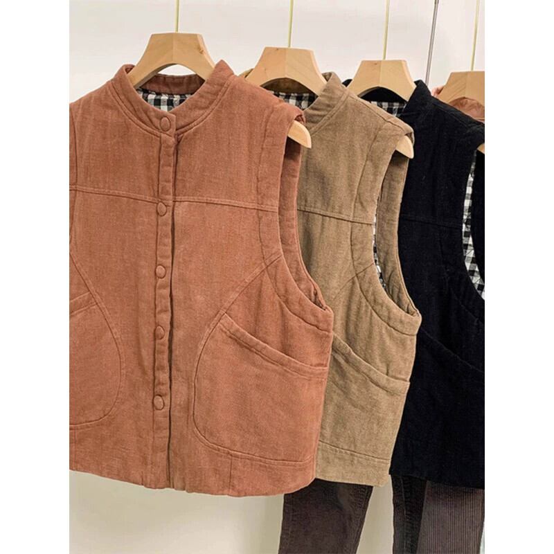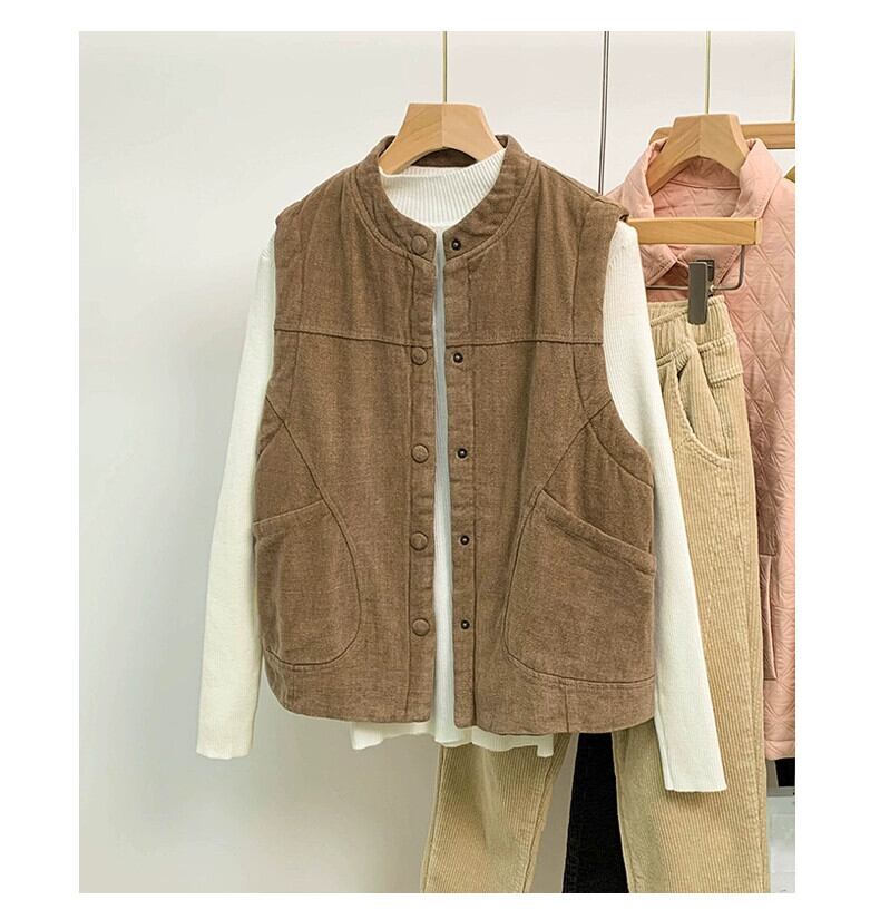 ese コーデュロイキルティングベストベスト女性秋と冬の緩い重ね着肥厚暖かいコーデュロイベストジャケットトップ オータム 秋物 ウィンター 冬物 sine5895925619