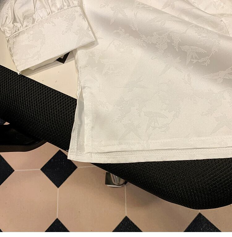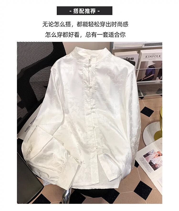 中国風のボタンダウン白サテンシャツの女性、春と秋のスタイル、ハイエンド、レトロ、ナショナルスタイル、改良された唐のスーツ、スタンドアップカラートップ ホワイト スプリング 春物 オータム 秋物 sine99761029044