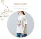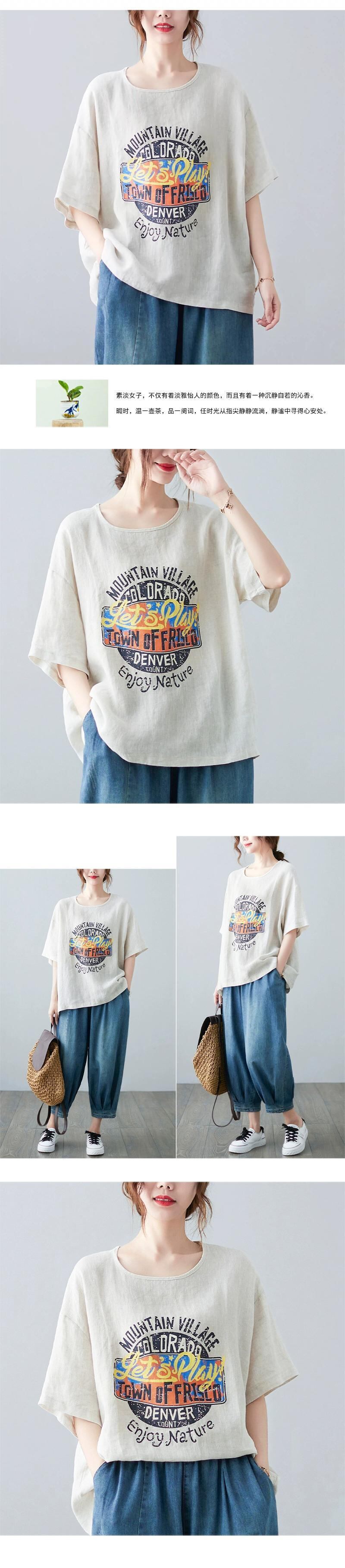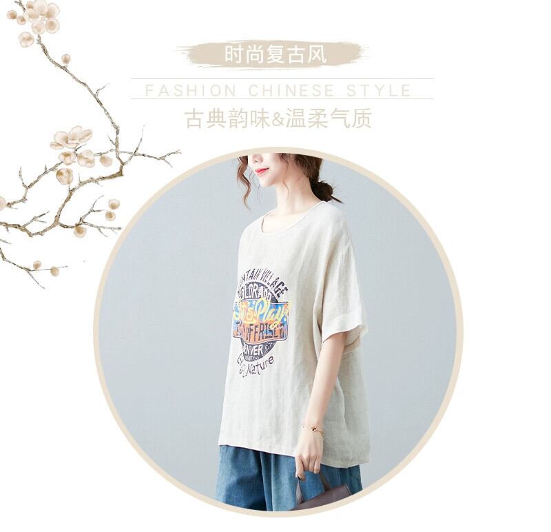 大きいサイズのレディース綿麻半袖Tシャツ2021年夏ゆったり太mmカバー肉感バージョンプリントカジュアル万能トップス コットン 大きめサイズ サマー 夏物 sine80830803556