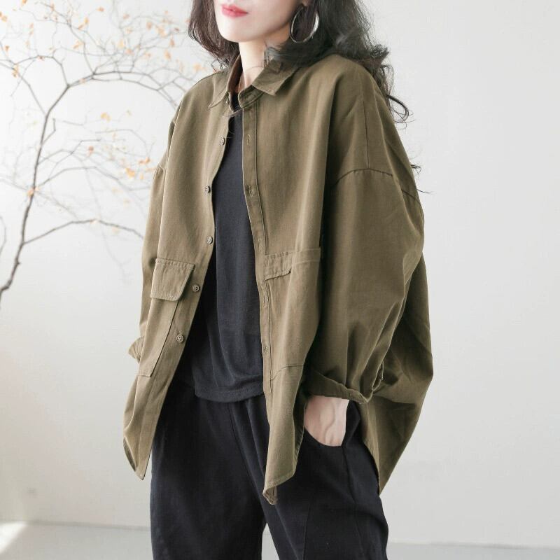 eign trade ese オリジナルハイエンドブランドの女性の無地大きなポケットワークジャケットレトロルーズラペルジャケットトップ ソリッドカラー sine57541386133