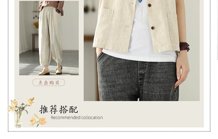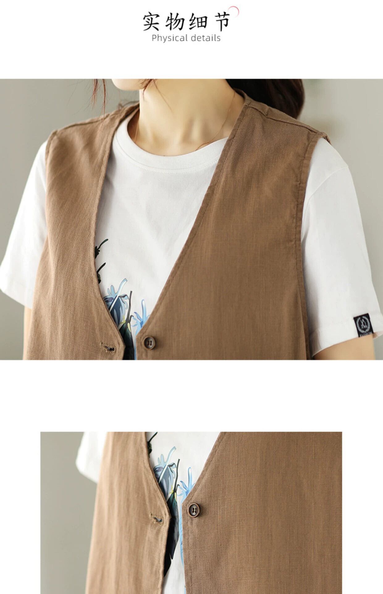 eign trade ese 有名なカウンター商品リネン V ネックシングルブレストベストベスト女性ルーズコットンとリネンノースリーブトップ Vネック sine99596038973
