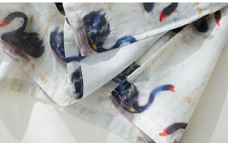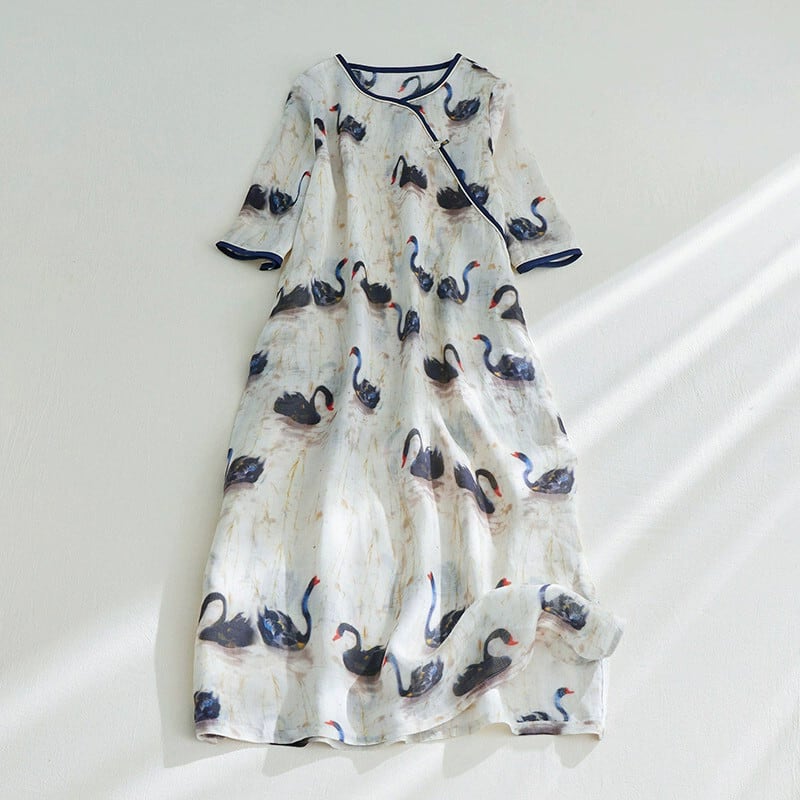 カットラベルショッピングモール引きこもり気質文芸ドレス女性のルーズ白鳥プリント中国プレートバックルラミーロングスカート sine13008338525